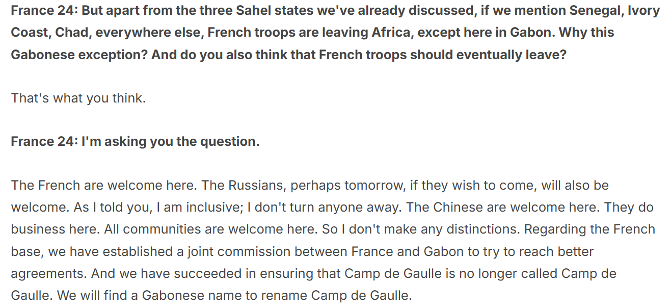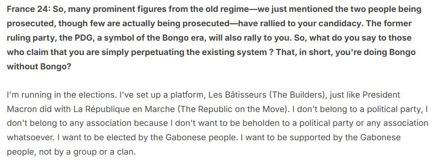 L’Ancien régime del Gabon ha abbandonato la sua veste di giunta militare e torna al suo vero status di governo civile con la benedizione e il sostegno di Emmanuel Macron.