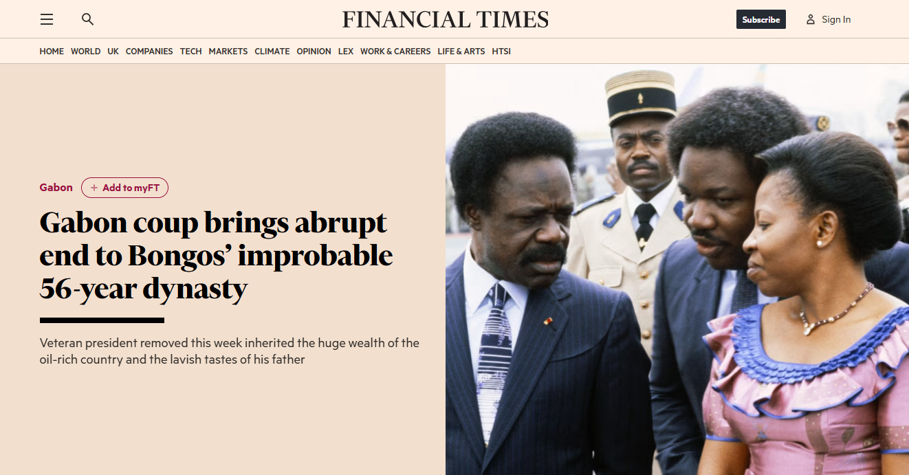Il 30 agosto 2023, un colpo di stato guidato dal generale di brigata Brice Nguema ha spazzato via il governo civile del presidente Ali Bongo, in carica dall’agosto 2009. Il suo illustre padre, il presidente Omar Bongo, ha governato il Gabon per 42 anni prima di morire di cancro all’intestino nel giugno 2009.