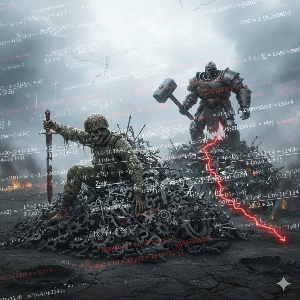 La guerra di logoramento, in cui la vittoria non deriva da manovre decisive ma dall’erosione continua della capacità di combattere dell’avversario, si presta alla modellizzazione matematica. Nella guerra russo-ucraina, che nel febbraio 2026 entrerà nel suo quinto anno, le dinamiche si sono decisamente spostate verso questa modalità dalla metà del 2022. L’esito del conflitto dipende dalla velocità relativa con cui ciascuna delle parti è in grado di reintegrare le perdite in termini di personale, attrezzature e munizioni rispetto ai danni inflitti dall’avversario.