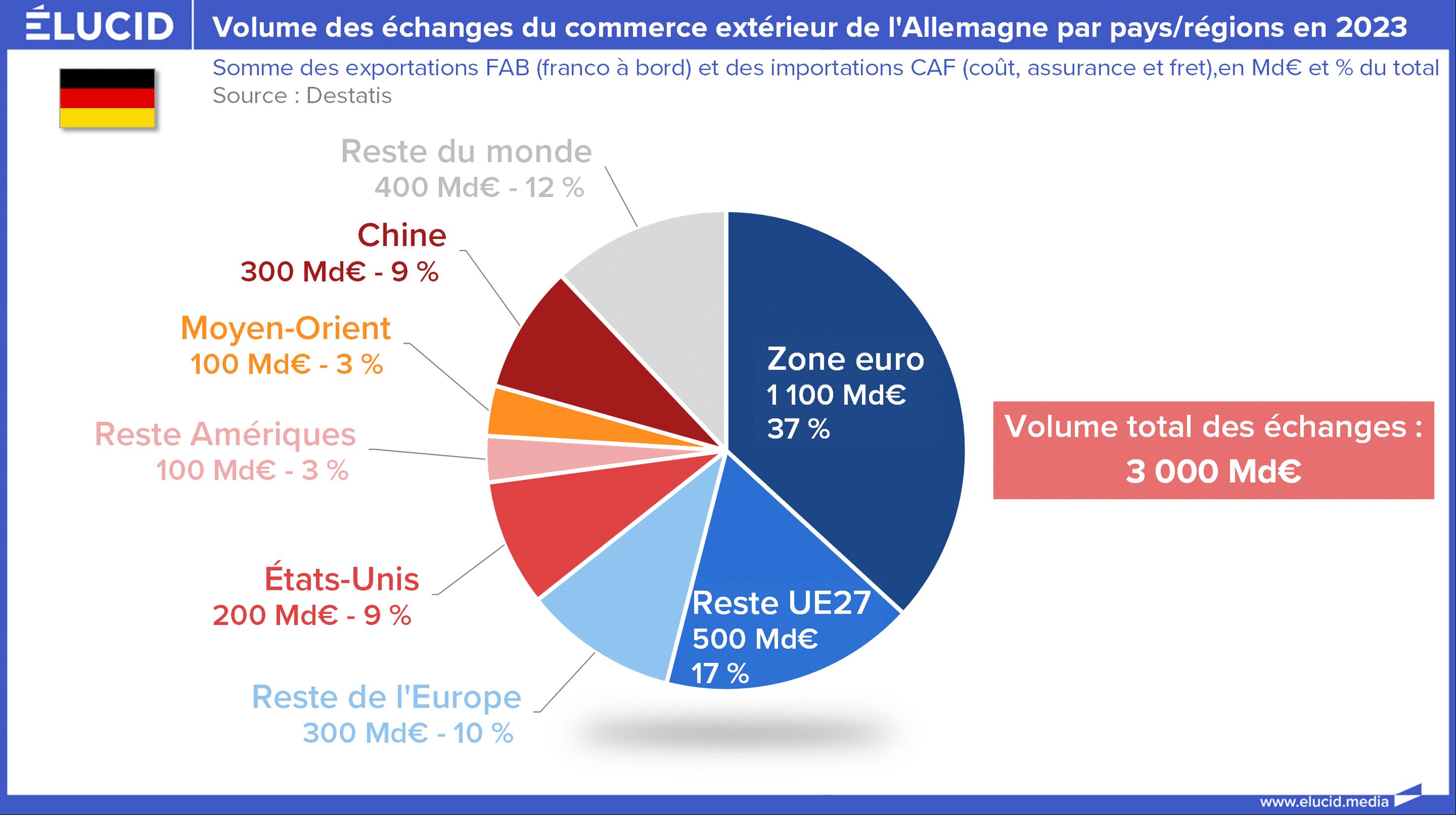 L’arrivo al potere di Donald Trump e la sua politica di dazi mette in discussione il libero scambio, una spina nel fianco per i tedeschi. Gli Stati Uniti, con oltre 60 miliardi di euro, rappresentano il più grande surplus commerciale della Germania (20 % del totale). Più del 10 % delle esportazioni tedesche sono concentrate sugli Stati Uniti nel 2024; addirittura il 13 % per le autovetture.